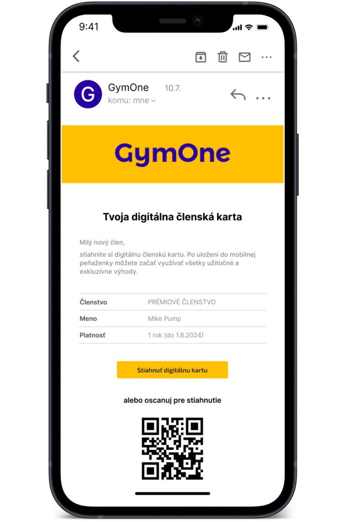 Po zakúpení členstva, alebo registrácii do členského programu dostaneš email so svojou digitálnou členskou kartou a prístupové údaje do svojho profilu v systéme. Kartu si uložíš do svojej mobilnej peňaženky veľmi jednoducho na pár klikov.